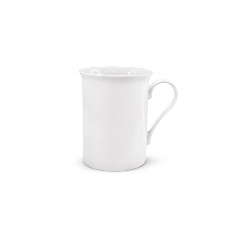 Standard mug with white lining, external white glossy finish with sublimation coating and white coloured handle.