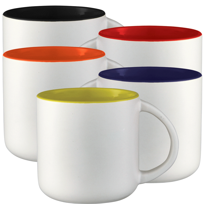 Standard mug with glossy finish. Features a C-handle classic design with white interior accents. 325ml capacity.