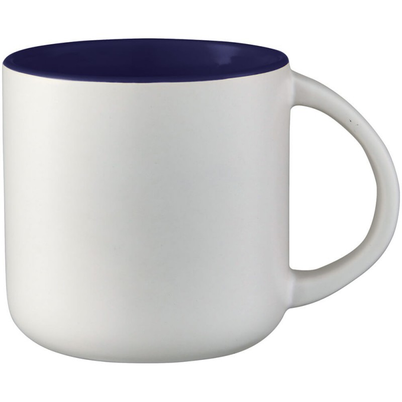 White ceramic mug with blue colour lining and handle. 410ml capacity. Available in 3 colours.