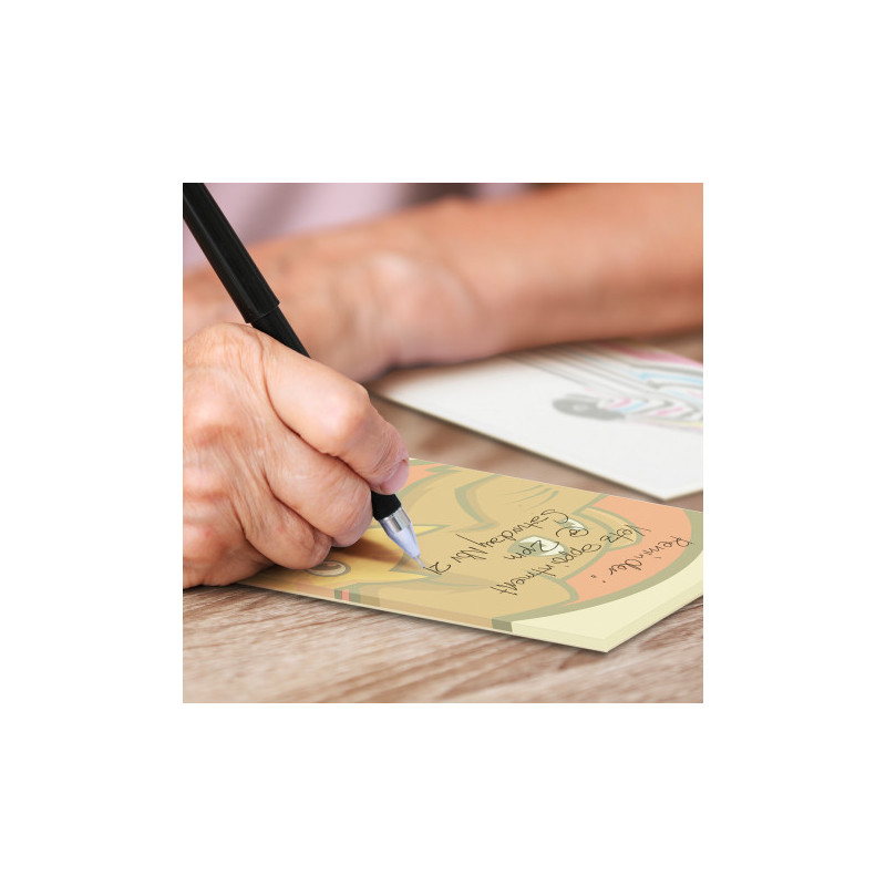 Pocket-size pad of 100 adhesive notes with a cardboard cover.