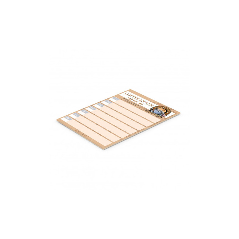 Very affordable A7 note pad with 25 leaves of quality 70gsm paper and a cardboard back. It is printed using four colour process, which gives the option of unlimited spot colours or stunning full colour at no extra cost. PMS colour matches are only approximate. Edge-to-edge printing is available and a lead time of 20 working days applies to this product....