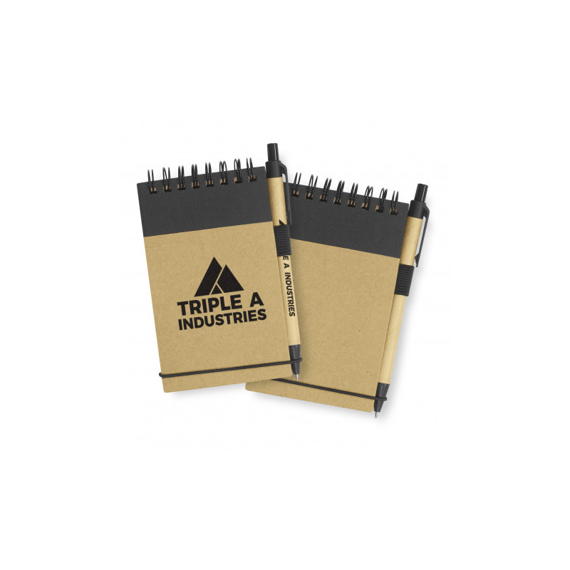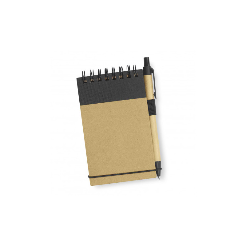 Small size, top opening wiro bound note pad with 60 leaves (120 pages) of 70gsm lined paper. Both the cover and note pad are manufactured from recycled paper.