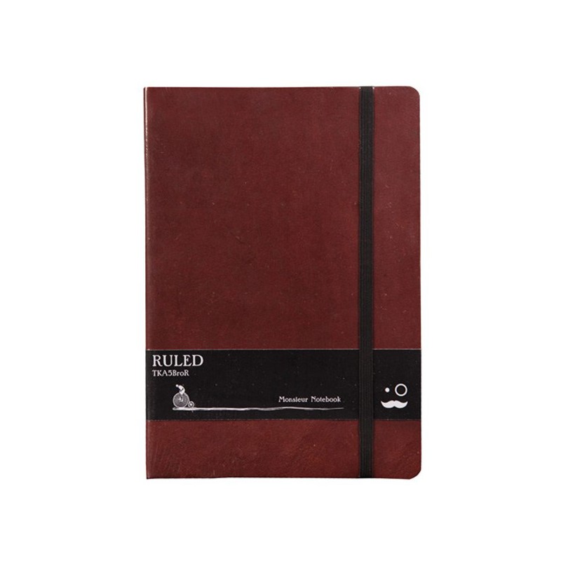 Small notebook with 80 leaves (160 pages) of 70gsm lined paper and a hard PU cover. It has an elastic closure band and a bookmark ribbon.