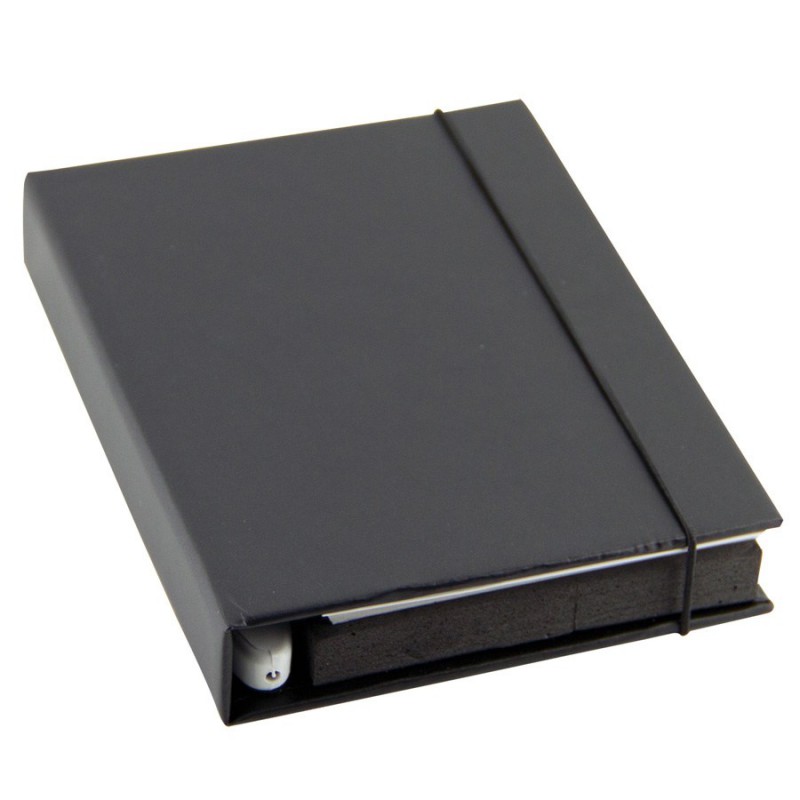 Pocket-size pad of 100 adhesive notes with a cardboard cover.