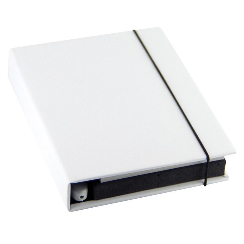 Small notebook with 80 leaves (160 pages) of 70gsm lined paper and a hard PU cover. It has an elastic closure band and a bookmark ribbon.