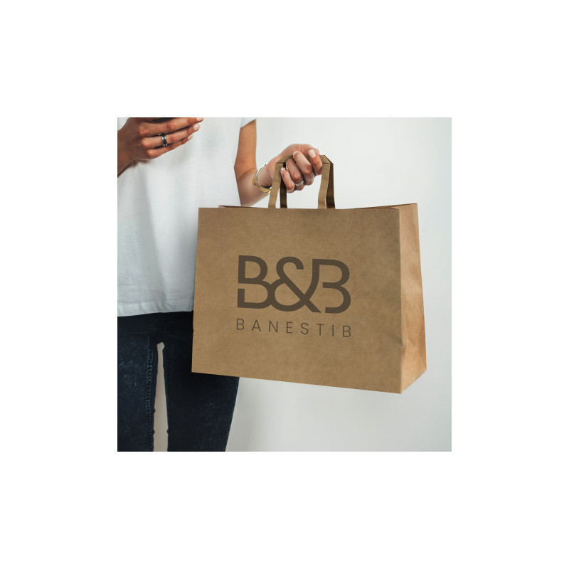 Medium-size paper carry bag with strong paper rope handles. It is manufactured from 180gsm kraft paper.