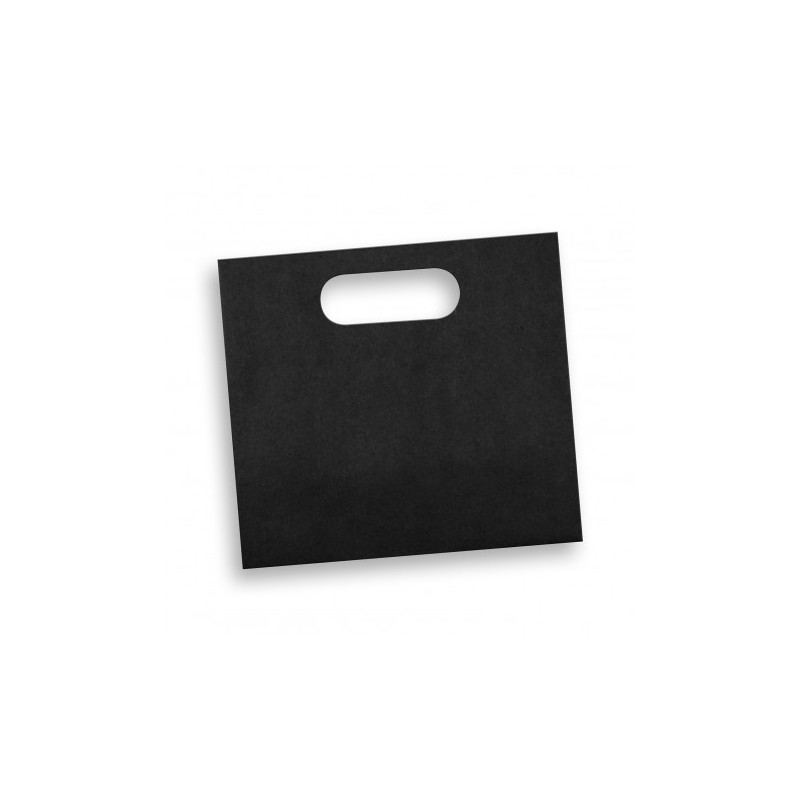 This warp and weft paper bag has cotton thread weaving into the paper fabric, the thread reinforces the paper strength, it is biodegradable, waterproof, and greaseproof. Tough and strong 2 black PP webbing handles.