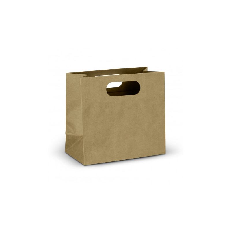 Medium-size paper carry bag with strong paper rope handles. It is manufactured from 180gsm kraft paper.