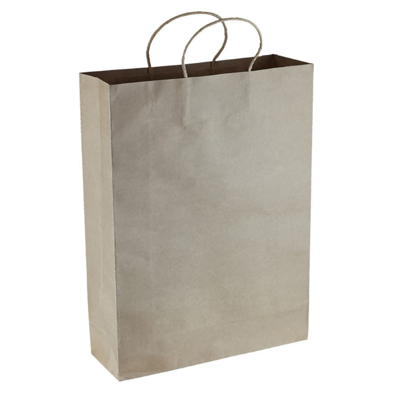 Medium-size paper carry bag with strong paper rope handles. It is manufactured from 180gsm kraft paper.