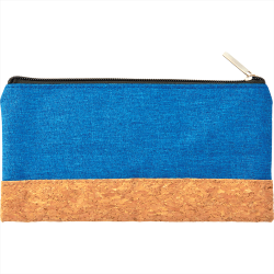 Smart pencil case which is manufactured from unbleached cotton canvas with a stylish natural cork accent panel around the base. It has a matching zippered top closure with a canvas zipper pull.