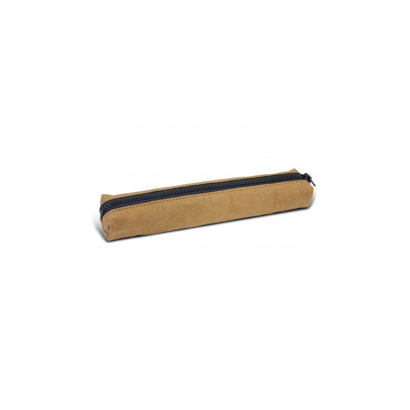 Zippered utility pouch made from kraft paper so the pouch is biodegradable. Extremely light weight and durable. Can be used to hold stationery, cosmetics, cables, first aid and travel items. Black zipper. Eco Credentials. Renewable. Recyclable. Biodegradable. Printed using reusable energy.