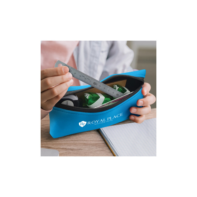 300D special polyester material with coating, pen and pencil case with a zip closure. Stylish fashion design with a large printing area, a great promotional product for school and office.