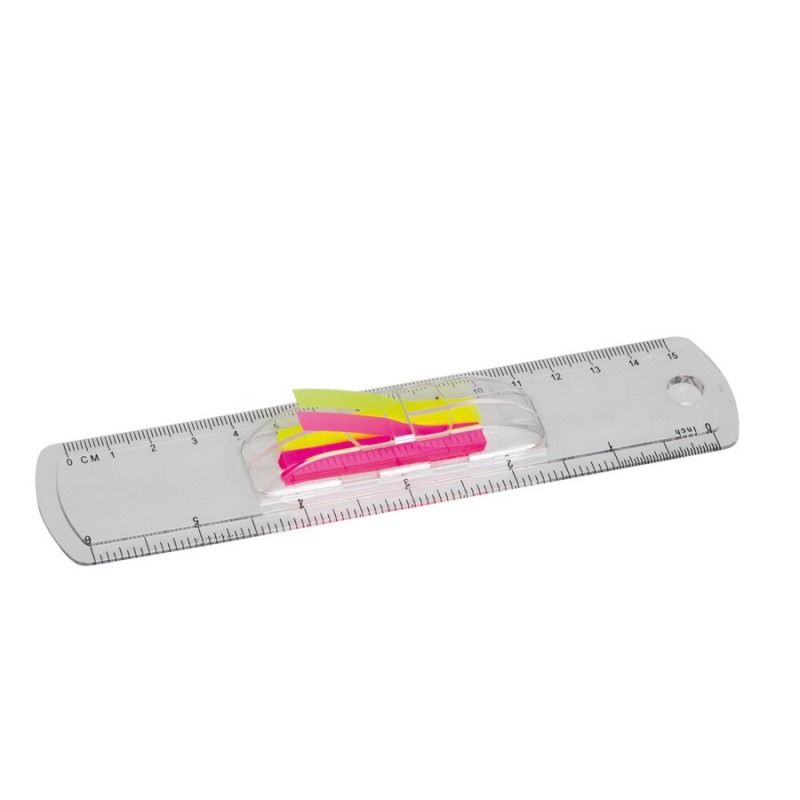 Classic 6"/15cm plastic ruler with handy stationery flags. Sliding access means the flags can be replaced easily.