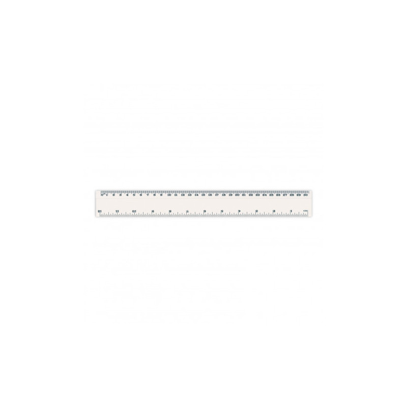 30cm plastic ruler with both sides graduations in centimetres and inches.