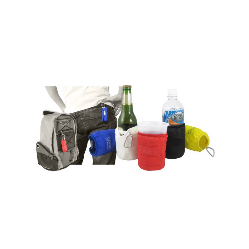 Compact cooler which can be rolled up and clipped on to bags, clothes, etc...