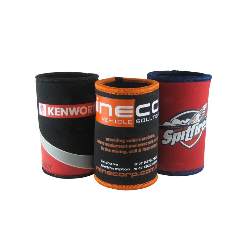 5mm Neoprene stubby holder with base and overlock/underlock stitch with stitch over tape as standard. Colours: Full colour sublimation.