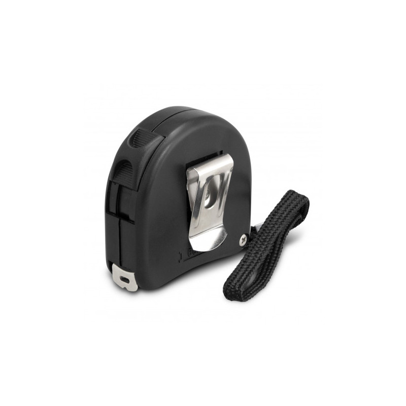 Compact measuring tape with a handy plastic clip. The retractable metal tape measures up to 1m in centimetres and inches.
