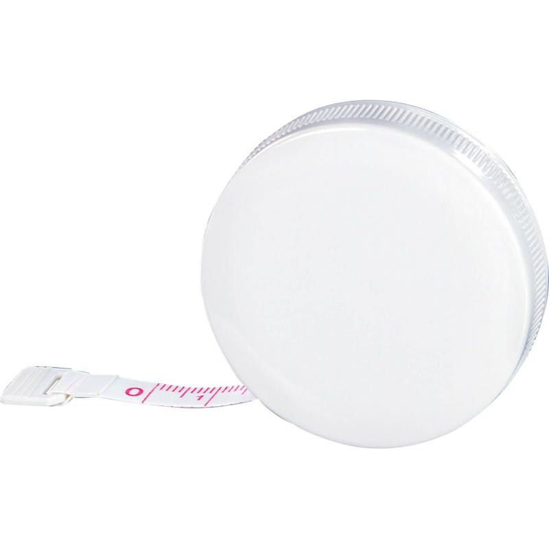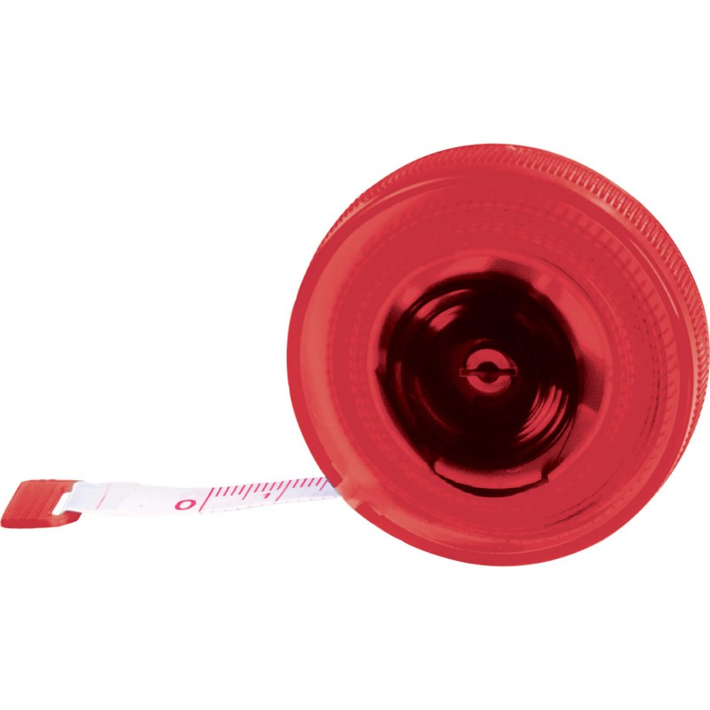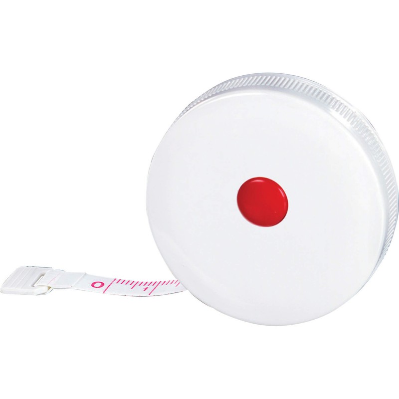 1.5m polyester tape measure with push button retract action. Tape - Metric calibrations on one side and imperial calibrations other side. White tape with red calibrations and red push button to retract.
