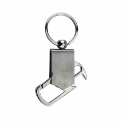 A versatile promotional product, this aluminium bottle opener has a key ring and can also be used to open drink cans.