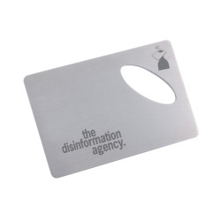 Credit card shaped stainless steel bottle opener with a large branding area.
