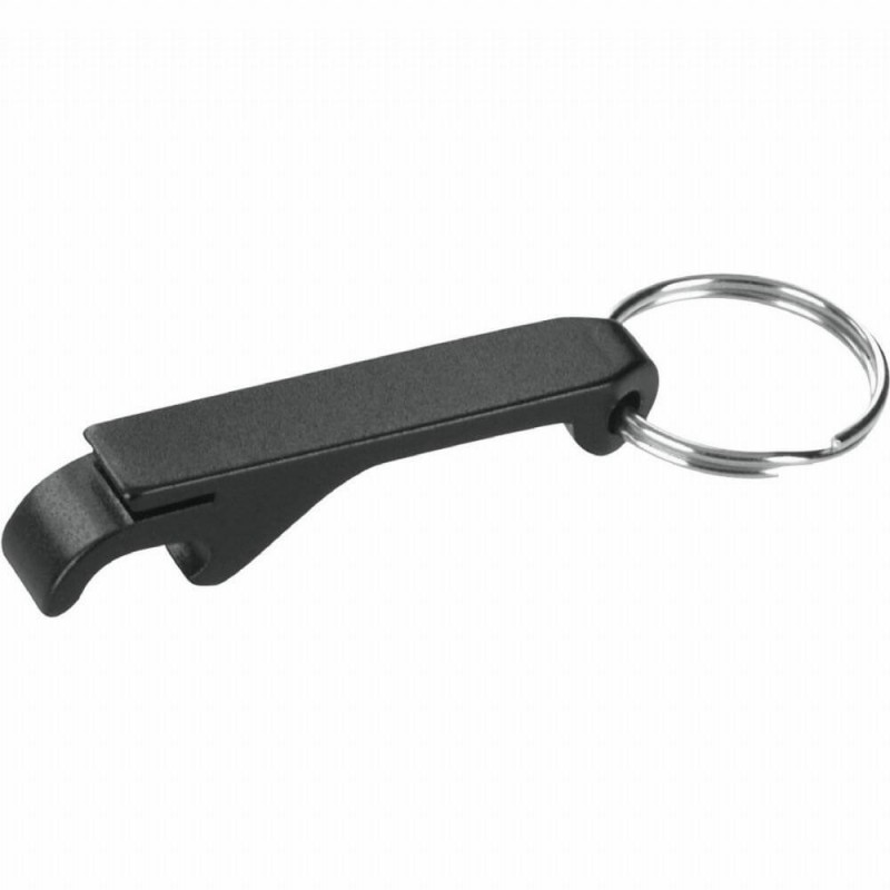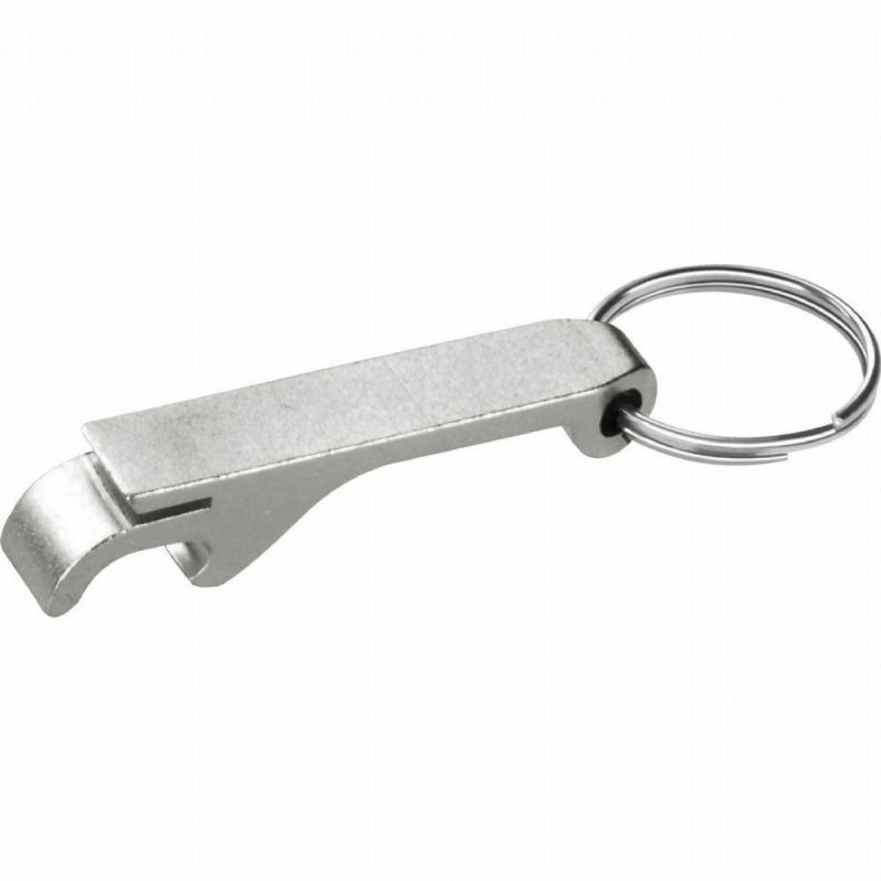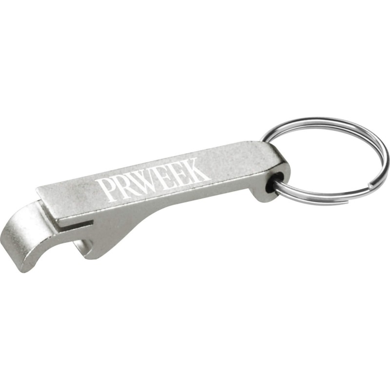 A versatile promotional product, this aluminium bottle opener has a key ring and can also be used to open drink cans.