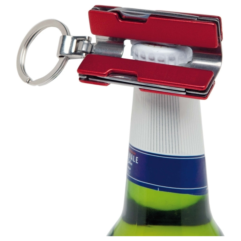A versatile promotional product, this aluminium bottle opener has a key ring and can also be used to open drink cans.