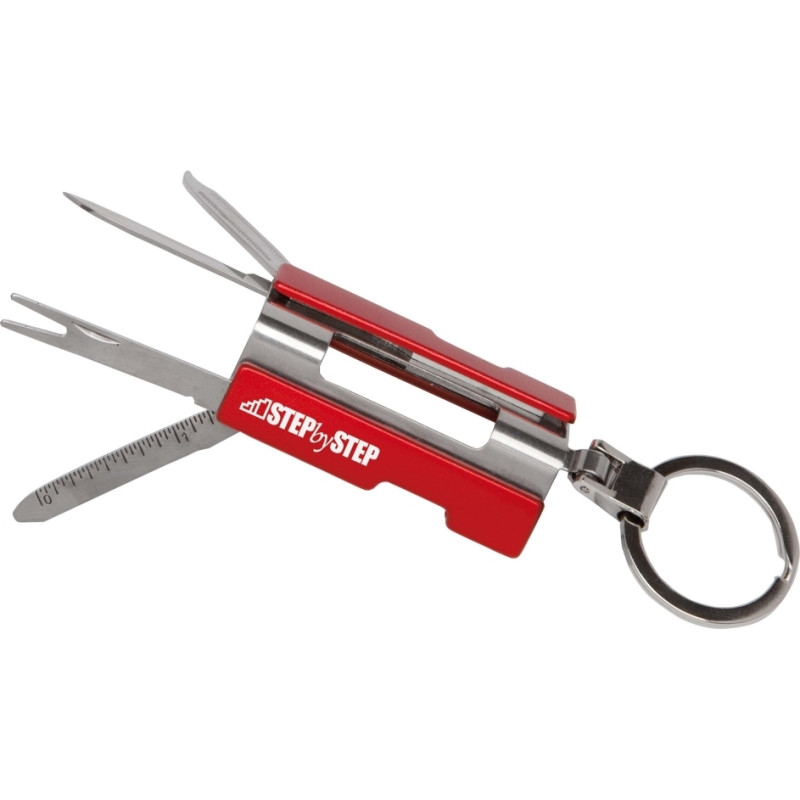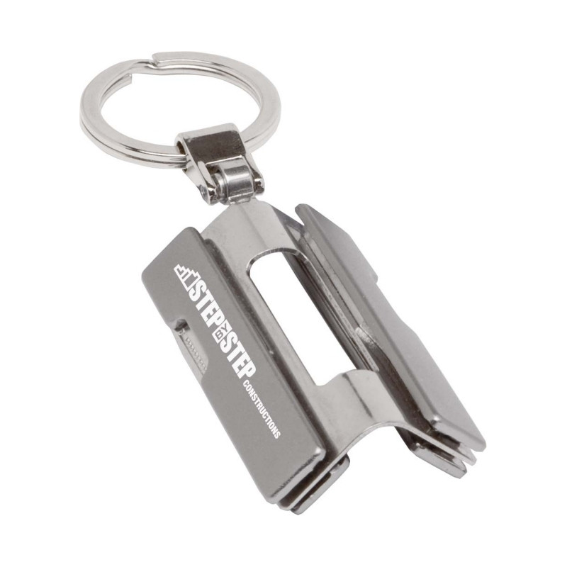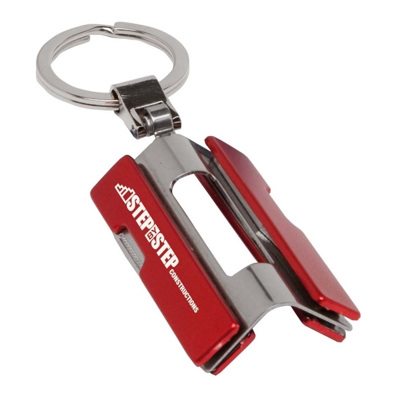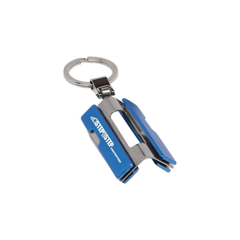 Multi-functional stainless steel key ring designed to open bottles and paint tins, perfect for tradies.