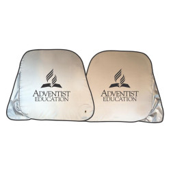 These double spring-loaded car sunshades feature a silver reflective surface and fold away into a space saving storage pouch.