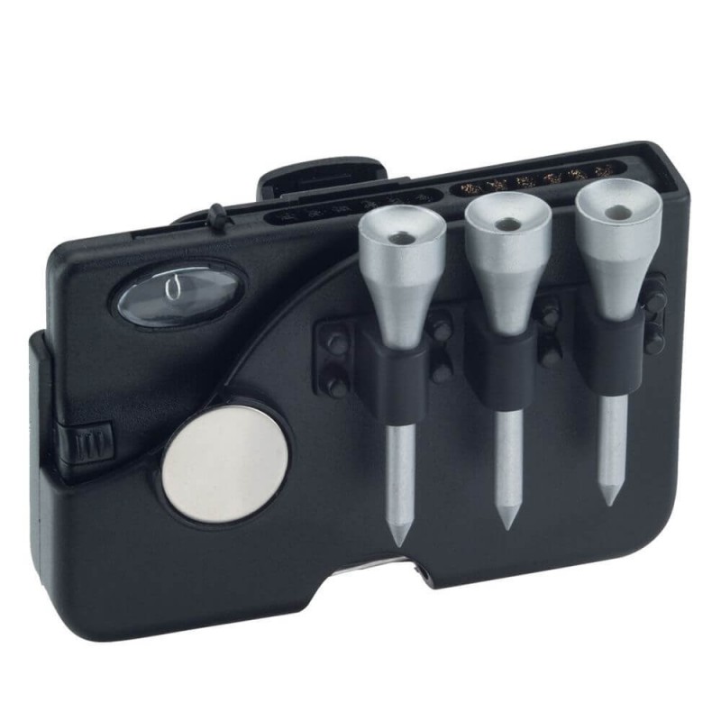 his quality golf pack is designed to attach to your golf bag and includes 2 golf balls, 4 tees and handy stainless steel golf tool with ball marker. (Golf tool also sold separately, see Golf Genie H5200).
