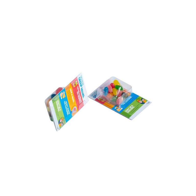 Billboard Card With 50G Jelly Belly Jelly Bean Bag Stapled To Card 250Gsm Paper Stock Full Colour/ Double Side Print *Note* Billboard/ Header Card Can Be Produced With A Variety Of Confectionery - Contact Us For Alternative Quotes *Note*