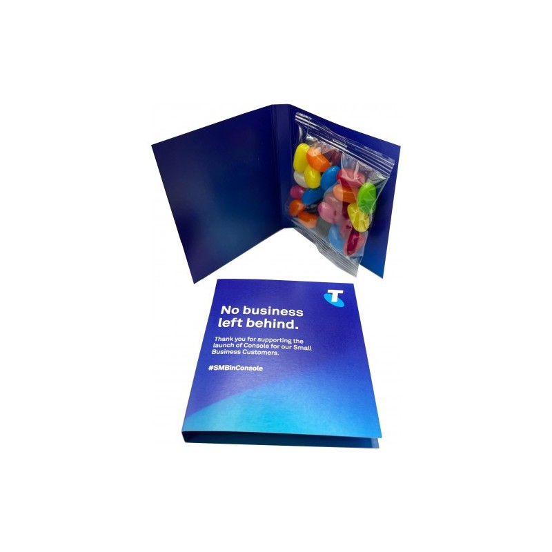 Full Colour Gift Cards With 25G Jelly Beans Bag Stapled To Gift Cards 250Gsm Paper Stock *Note* Gift Cards Can Be Produced With A Variety Of Confectionery - Contact Us For Alternative Quotes *Note*