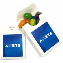 Flip Lid Cardboard Box Filled With 25G Jelly Belly, Jelly Beans Plastic Free - Tamper Seal Box - Resealable Box - Recyclable Box Large Branding Area Allows For Branding On The Front & Back Of Box ingredient & Best Before information On Each Box Confectionery Packed Directly into Box