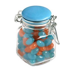 Small Square GlassJar Filled With Mixed Or Corporate Coloured Jelly Beans 100G