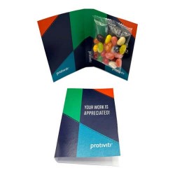 Full Colour Gift Cards With 25G Jelly Beans Bag Stapled To Gift Cards 250Gsm Paper Stock *Note* Gift Cards Can Be Produced With A Variety Of Confectionery - Contact Us For Alternative Quotes *Note*