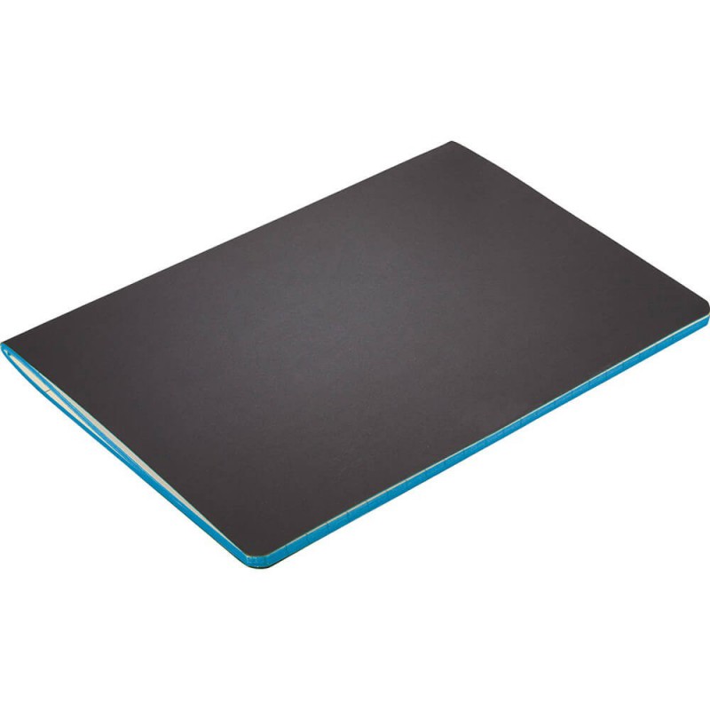 Exceptional A5 notebook with 70 leaves (140 pages) of 80gsm lined cream paper and a bookmark ribbon. It has a soft cover manufactured from recycled post-consumer polyester with an elastic closure.