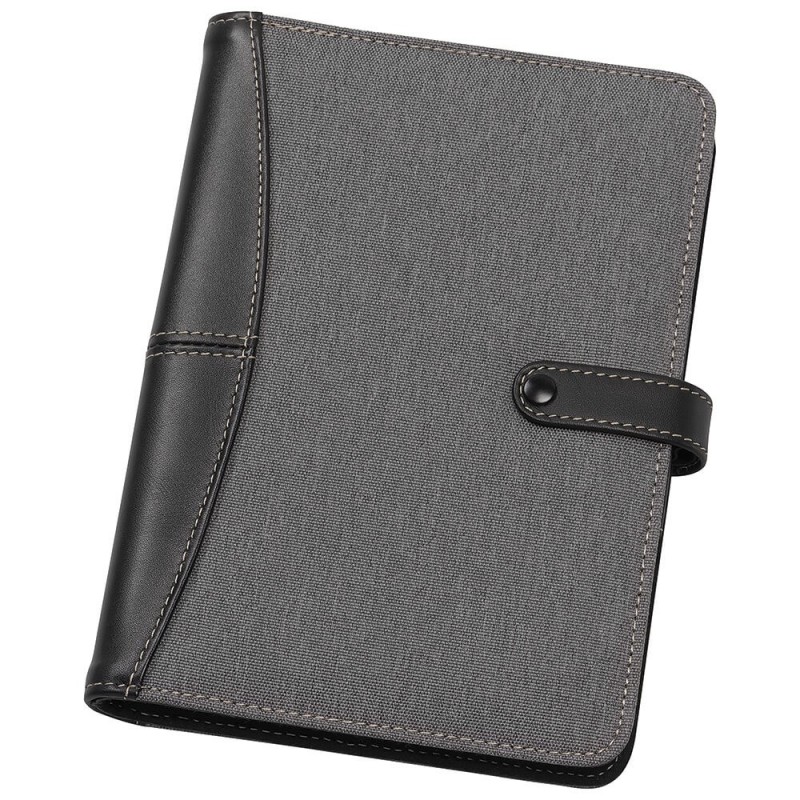 Exceptional A5 notebook with 70 leaves (140 pages) of 80gsm lined cream paper and a bookmark ribbon. It has a soft cover manufactured from recycled post-consumer polyester with an elastic closure.