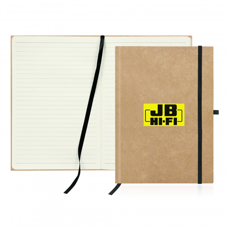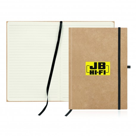 Kraft covered medium size notebook with 80 stone paper leaves (160 pages) and 120gsm lined paper. It features a pen loop, bookmark ribbon and stone paper which has a smooth writing surface.