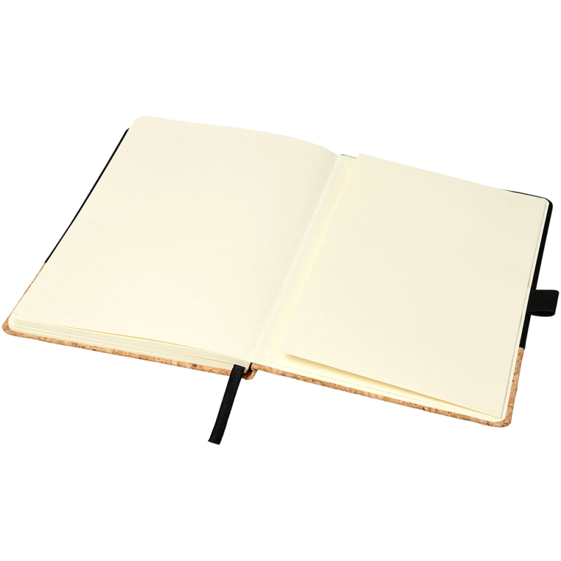 Exceptional A5 notebook with 70 leaves (140 pages) of 80gsm lined cream paper and a bookmark ribbon. It has a hard cover manufactured from recycled post-consumer polyester with an elastic closure and pen loop.