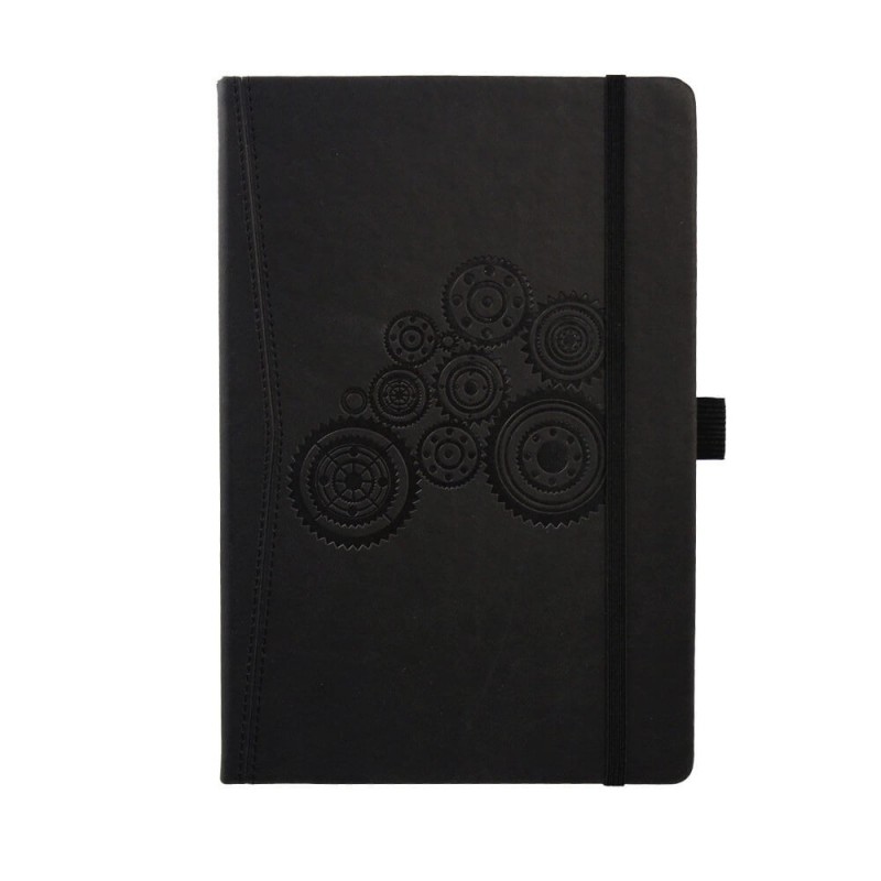 Large-size notebook with a soft leather-look PU cover which Thermo debosses to a stunning two-tone finish. It has 80 leaves (160 pages) of high-quality 80gsm lined cream paper and a bookmark ribbon.