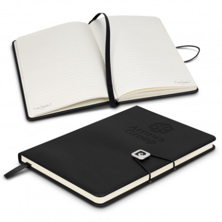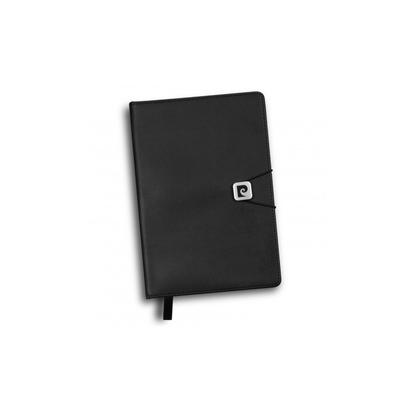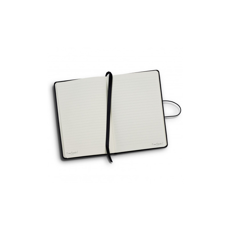 Stylish notebook that has 80 leaves of cream lined 80gsm paper, with a thermo PU cover and an elastic band closure with a branded metal slider, which keeps your notes secure. The Pierre Cardin logo is debossed on the back cover of the notebook.
