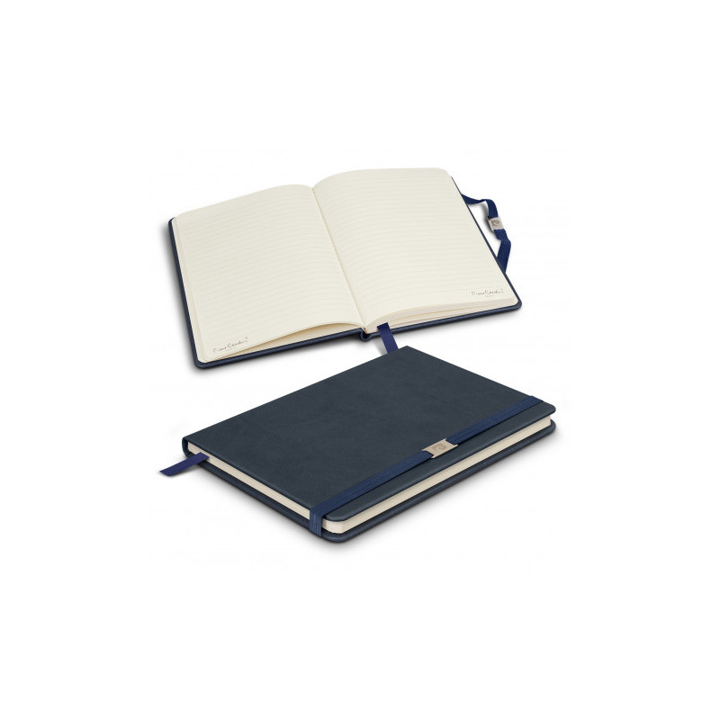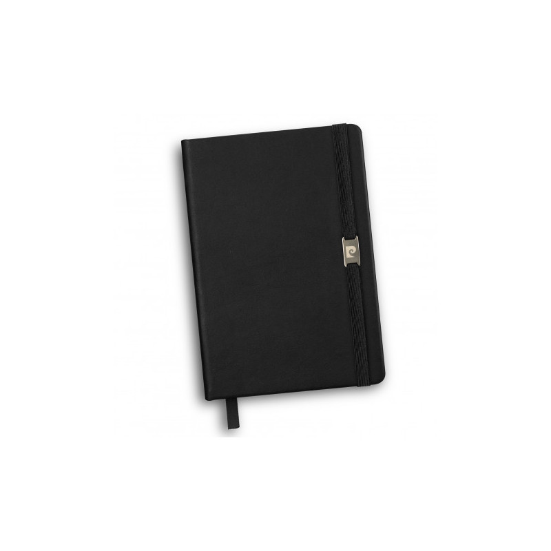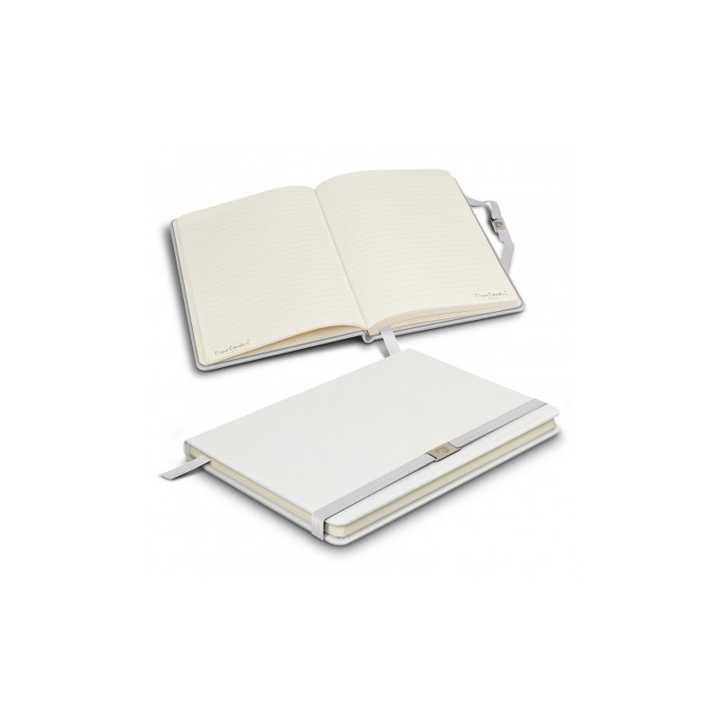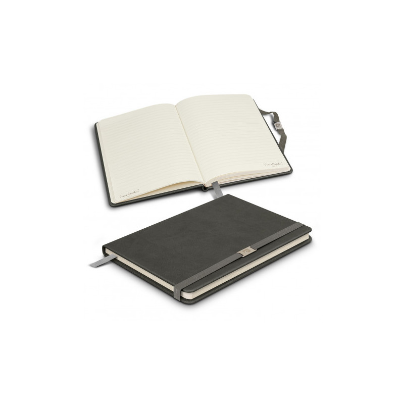 Quality notebook that has 80 leaves of cream lined 80gsm paper with a thermo PU cover and a branded metal buckle. The Pierre Cardin logo is debossed on the back cover of the notebook.
