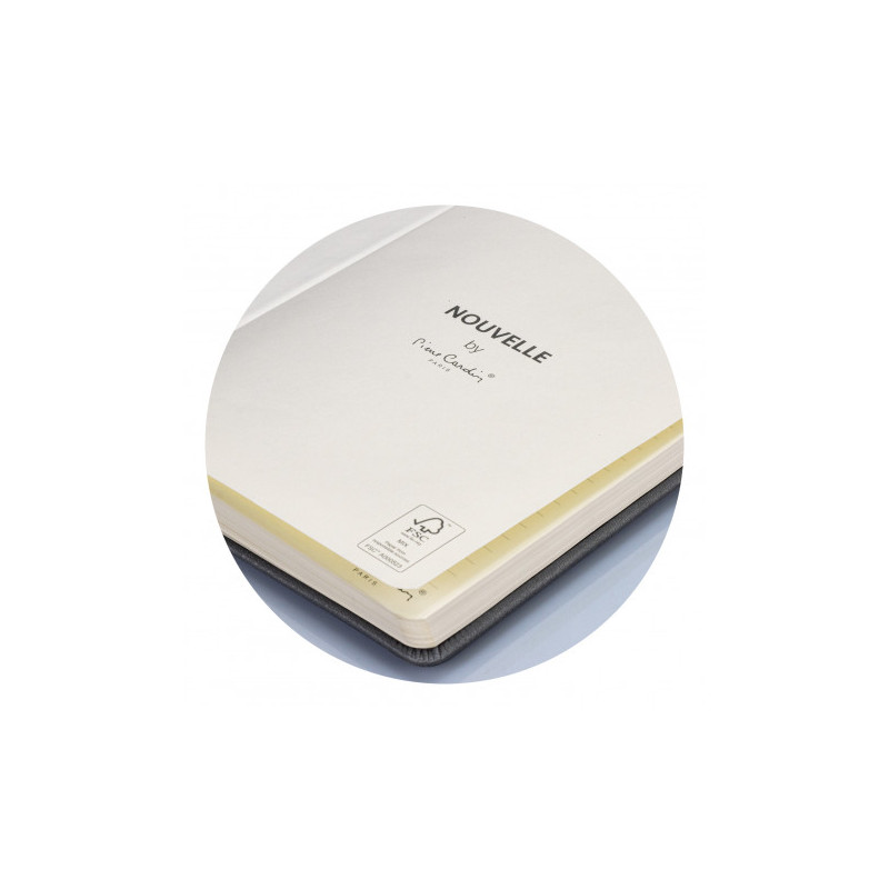 A hard bound cover made from recycled paper and colour accented epage edges for a stylish and more environmentally friendly feel.