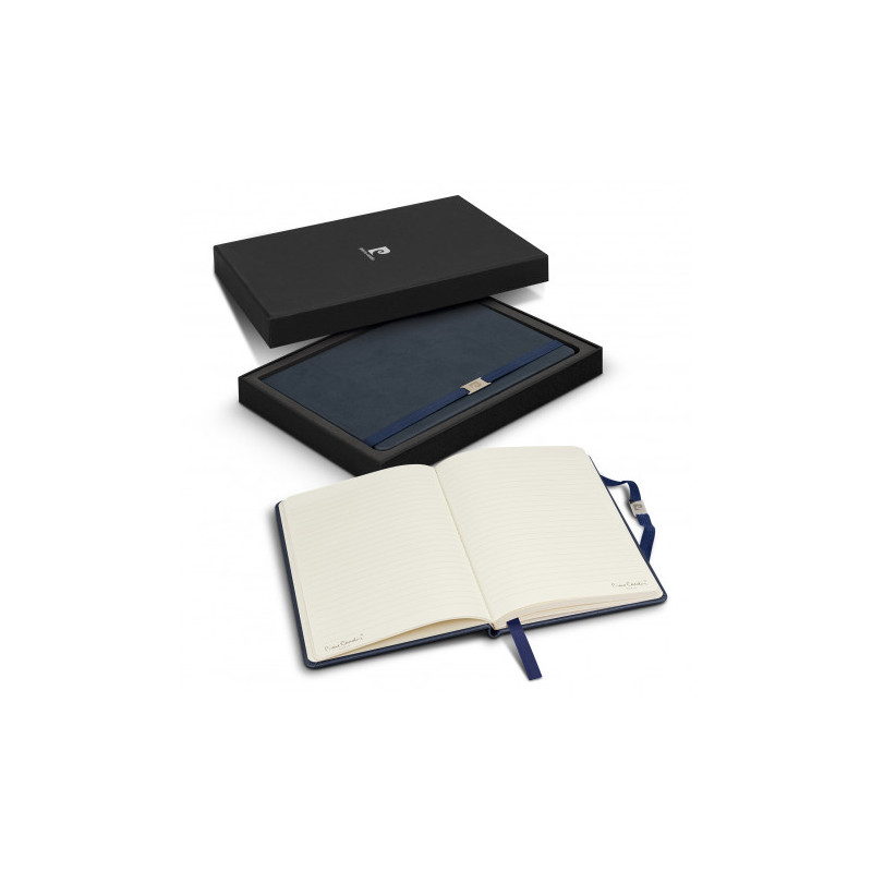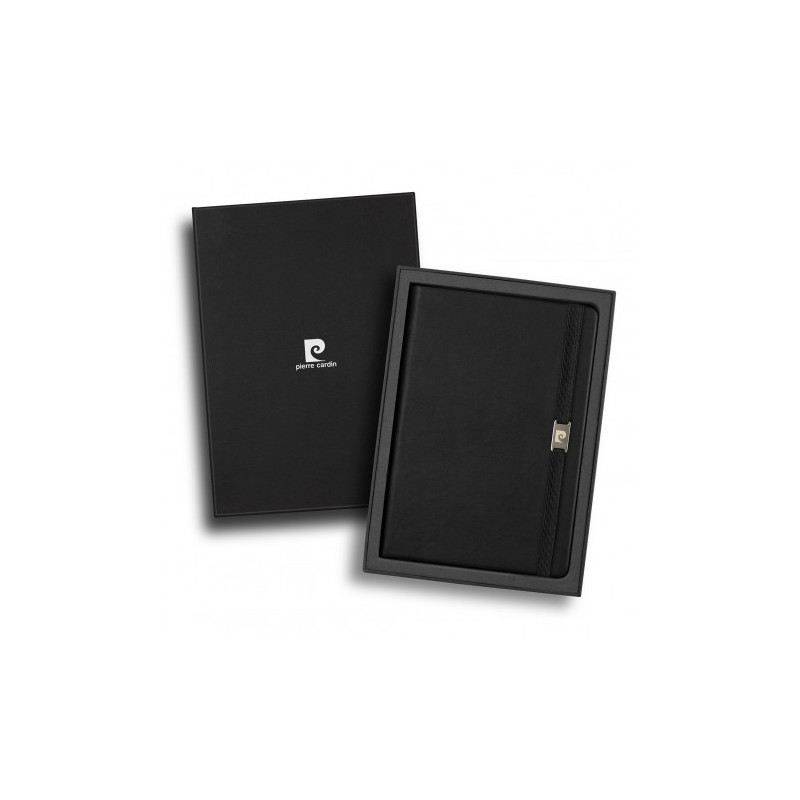 Stylish notebook that has 80 leaves of cream lined 80gsm paper, with a thermo PU cover and an elastic band closure with a branded metal slider, which keeps your notes secure. The Pierre Cardin logo is debossed on the back cover of the notebook.