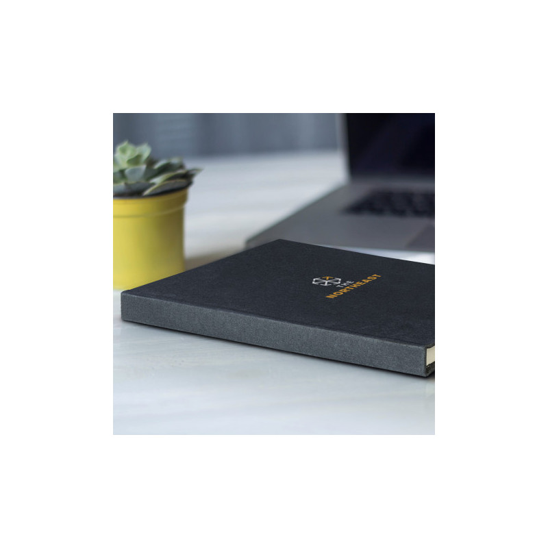 A hard bound cover made from recycled paper and colour accented epage edges for a stylish and more environmentally friendly feel.
