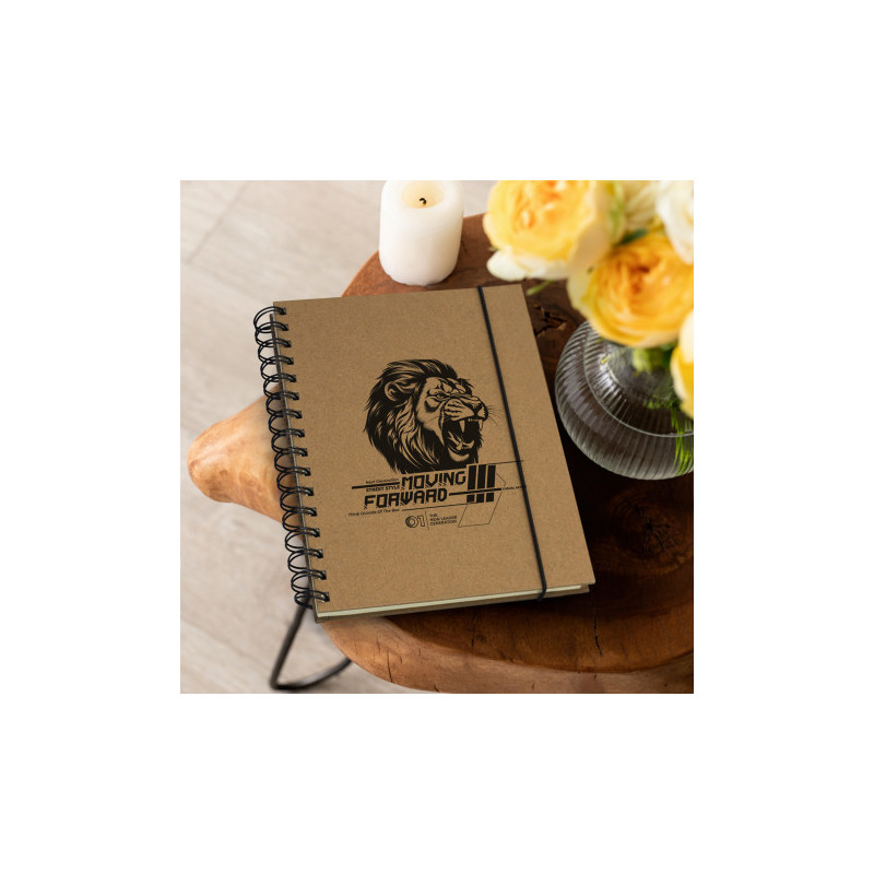 Smart medium-size notebook with 80 leaves (160 pages) of 70gsm lined and unlined kraft paper and a hard kraft paper cover. It features an elastic closure band, pen loop and a bookmark ribbon.