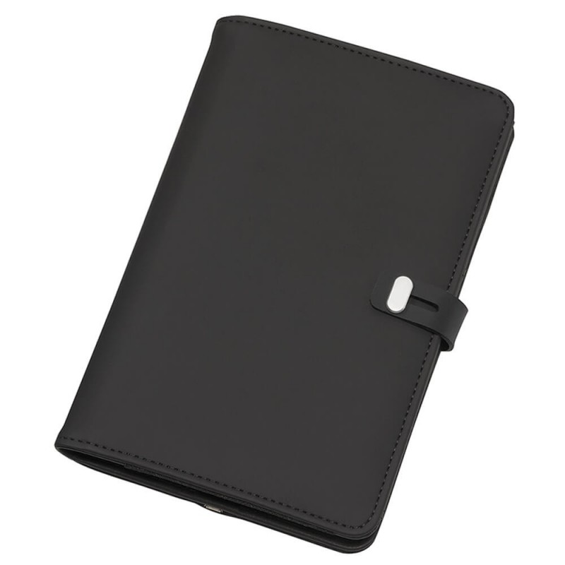 Quality notebook presented in a stylish giftbox. The notebook that has 80 leaves of cream lined 80gsm paper, with a thermo PU cover and a branded metal buckle.