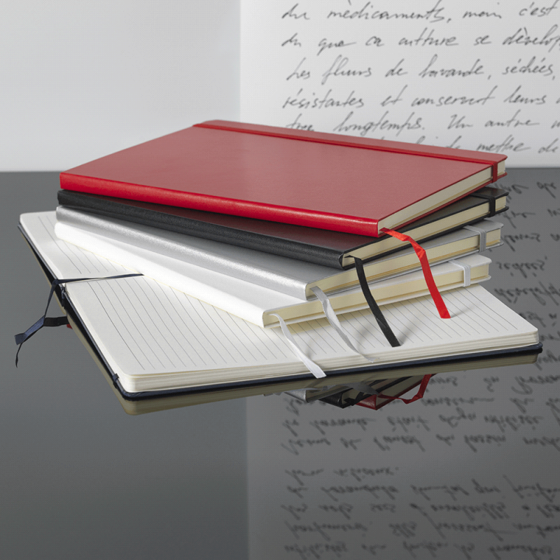A hard bound cover made from recycled paper and colour accented epage edges for a stylish and more environmentally friendly feel.