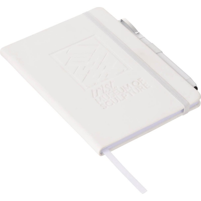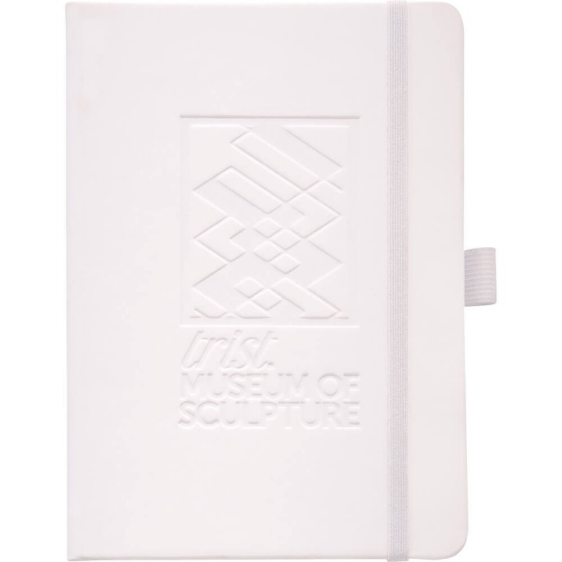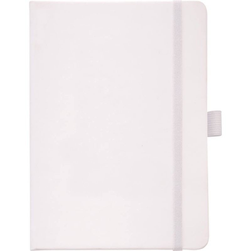 Quality notebook presented in a stylish giftbox. The notebook that has 80 leaves of cream lined 80gsm paper, with a thermo PU cover and an elastic band closure with a branded metal slider.