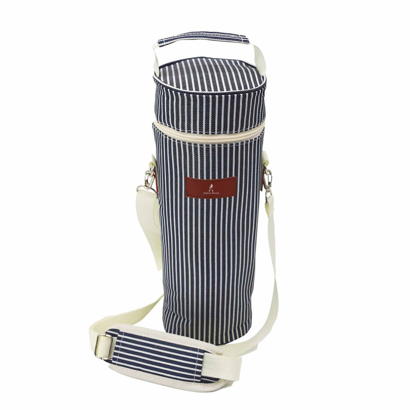 Wine bag with two tone 1200D polyester and 600D black polyester with shoulder strap. Aluminium foil insulation. Set contains 2 x ABS wine glasses, 2 x cotton napkins and a bottle opener.
