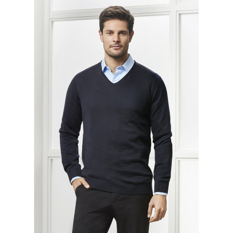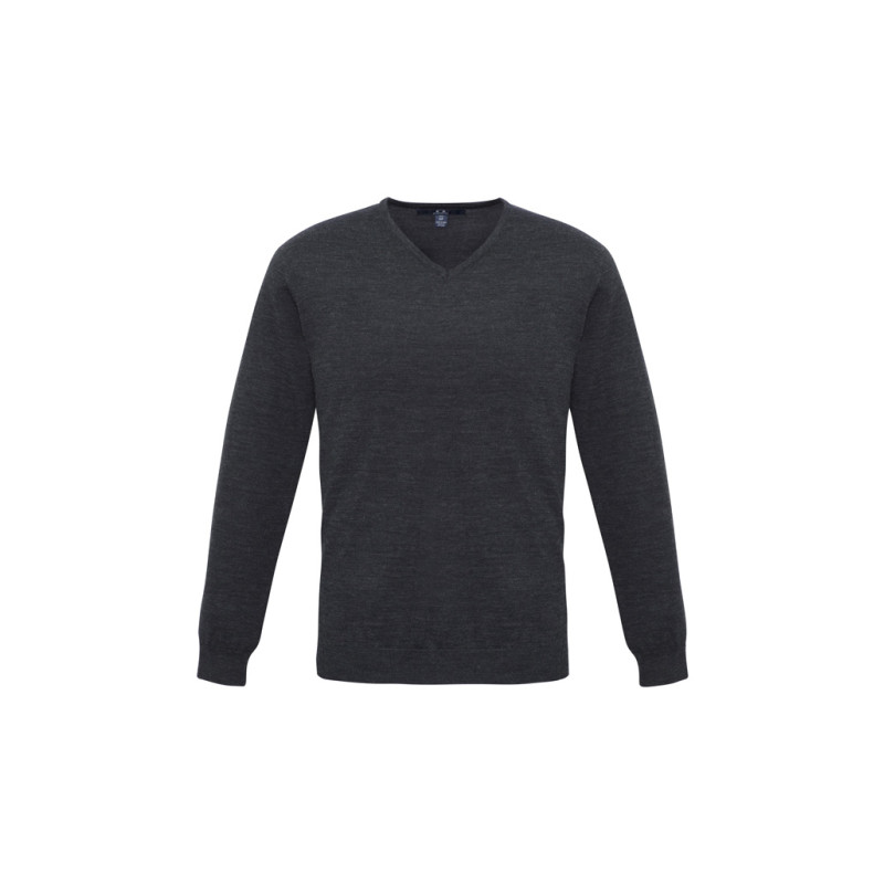 Mens classic fit V-neck with relaxed ribbed cuff and hem thats not too tight or loose. Fabric: 50% Merino Wool, 50% Acrylic - 14 Gauge,Machine washable on wool setting.